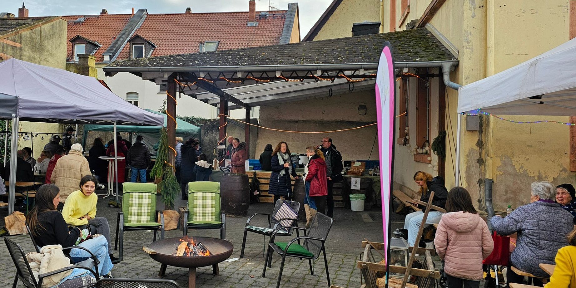 Rund um eine Feuerschale laden gemütliche Sitzgelegenheiten zum Verweilen ein. Ob Glühwein, Bier oder ein Glas Sekt – zum passenden Getränk gibt es Pizza, indische Spezialitäten oder klassische Bratwurst im Brötchen. Die Kolpingjugend verwöhnt mit frischen Waffeln und hausgemachtem Kuchen.
